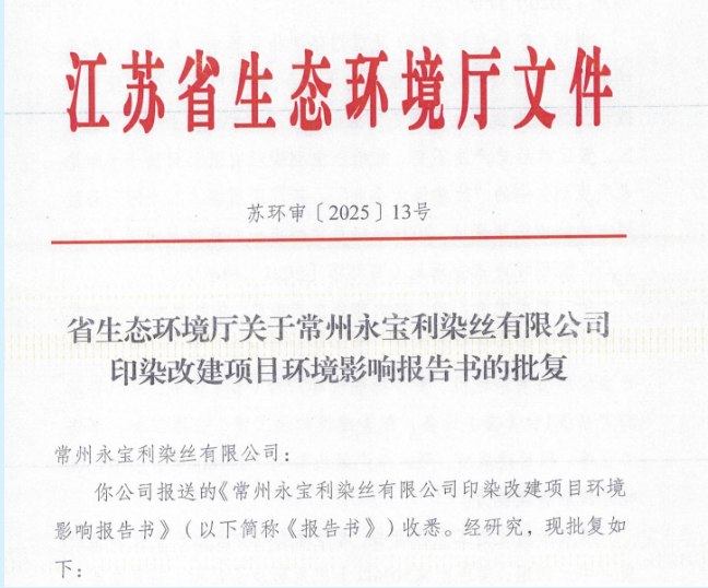 近日,我公司承接的《永寶利印染改建改建項目》順利取得省廳環(huán)評批復,這也是常州首個印染改建項目。