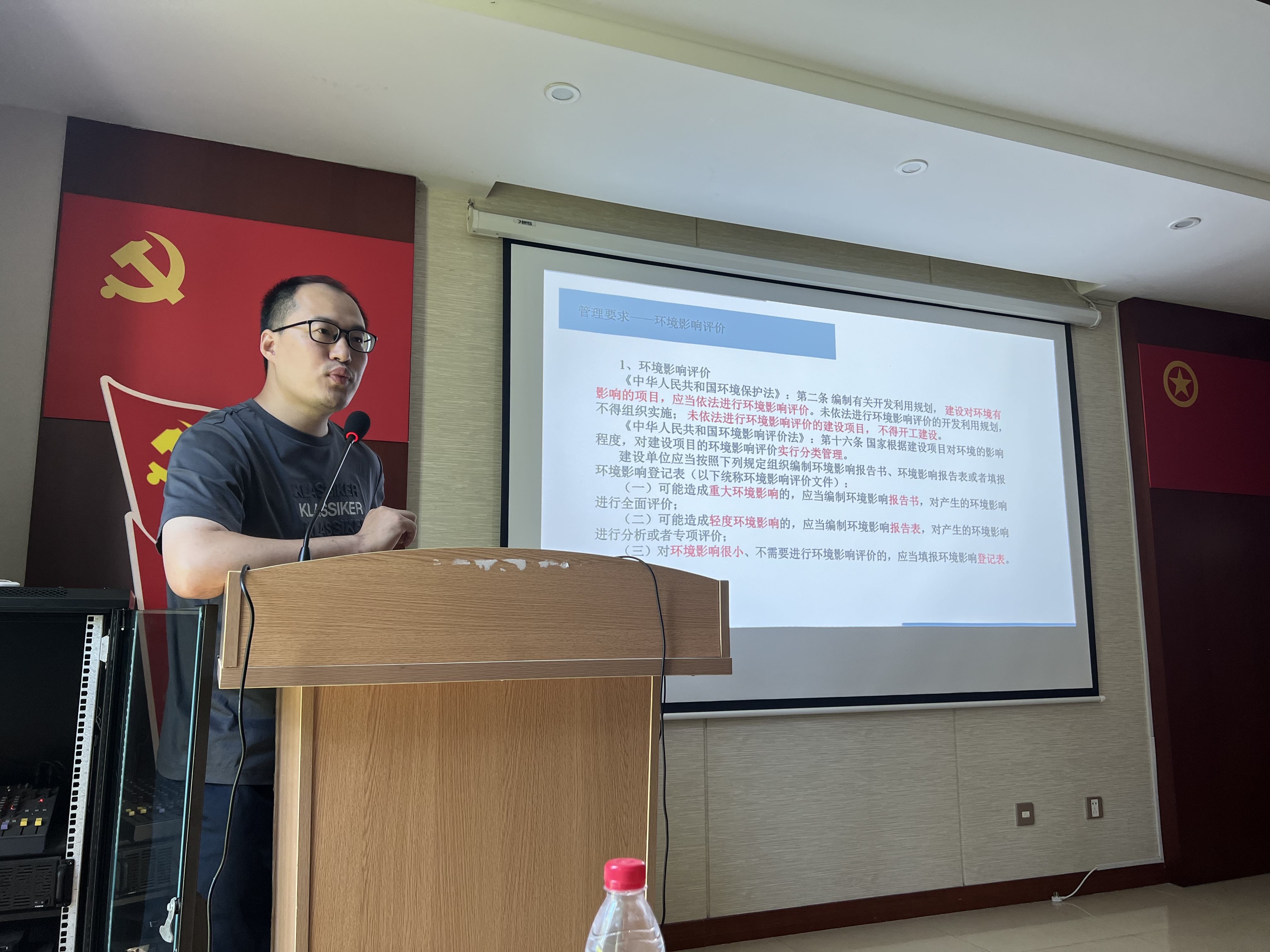 培訓會上,咨詢?nèi)L汪超作為主講人,就環(huán)保手續(xù)類型、國家對環(huán)保手續(xù)的管理要求、常見違法行為、如何判別環(huán)保手續(xù)和日常管理建議五個方面展開培訓,得到了各參會人員的一致好評。